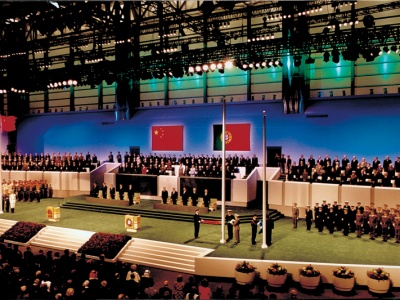 Serious staging produced the entire midnight handover ceremony, in addition to various official engagements, surrounding the return of the Portuguese enclave to China.